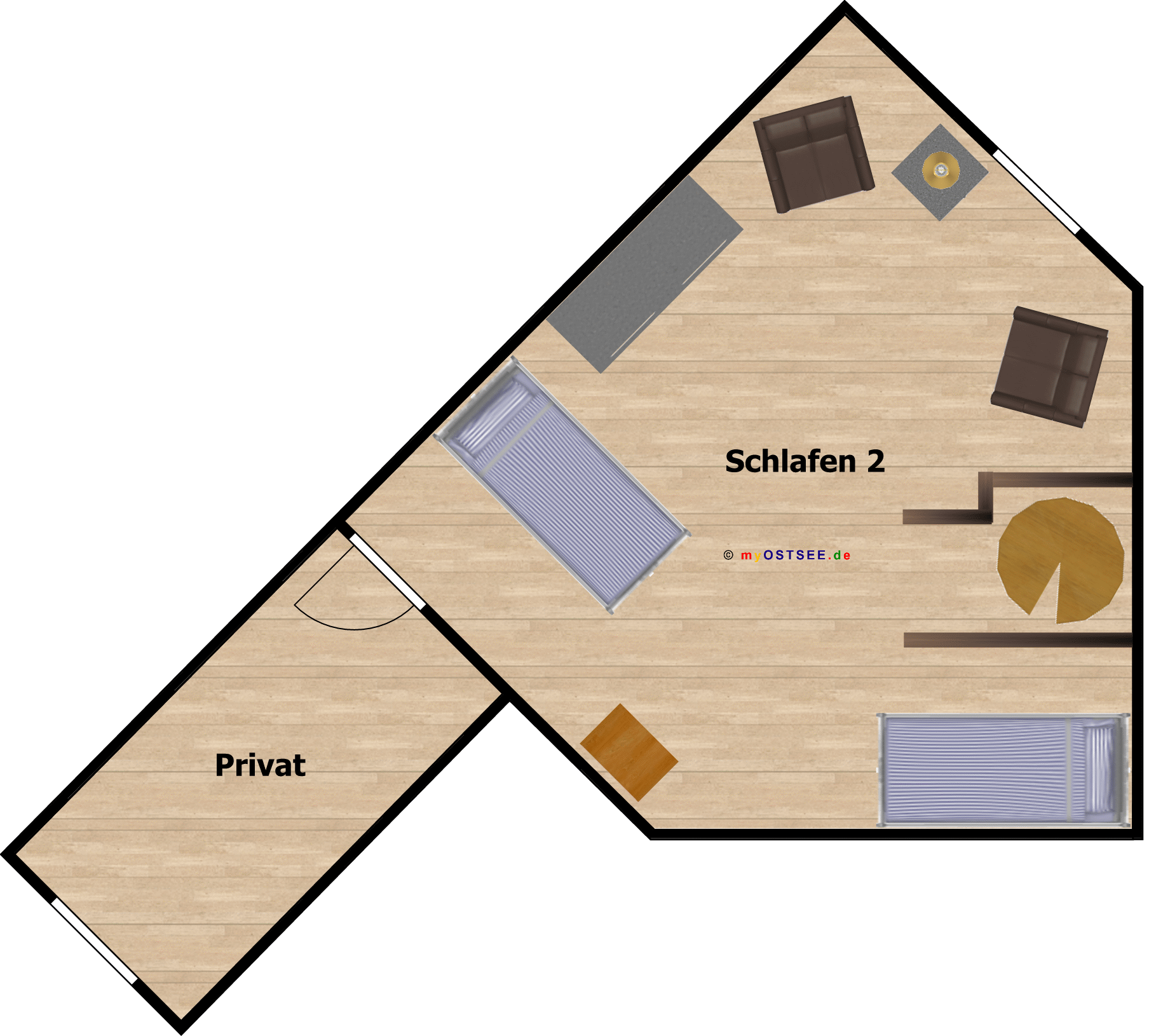 - 2 Einzelbetten 2,00 x 0,90 m